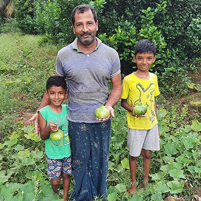 Quitting a town lifestyle, Mr Yuvaraj is engaged in farming as his full-time livelihood. He has travelled across places to identify those medicinal plants, flowers, fruits and trees which are of good market value and is being a role model and supporter for farmers in his place. Mr Yuvaraj started growing seeds back again now and is majorly into fruits and vegetable production. With his kids playing around, Mr Yuvaraj says very proudly how his children enjoy being around him in the farm learning about soil and plants. Kids are even more knowledgeable when it comes to plants and they are open to guests who visit their farm who are willing to learn, volunteer and support farm activities.