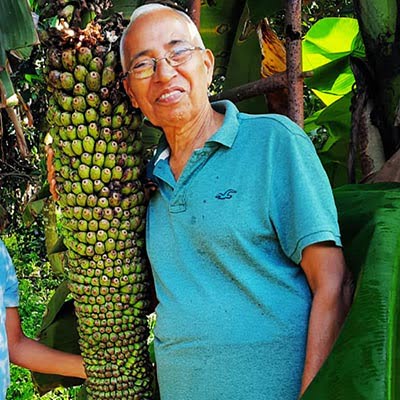 With heirloom varieties of 100 years old, Mr George is doing organic farming full-time. His inspiration is from his 99 year old father who can still climb trees. One can listen to the stories of seeds and tubers at Mr George’s farm which are of high resilience and adapt to climate change. Ranging from Red Ginger to varieties of Bush pepper, mango ginger, yellow Jalapeno and medicinal plants, Mr George’s farm is an integrated organic agro forest with dense rubber and pepper plantation. He is a certified organic farmer. 1½ meter length cow pea, Red striped cow pea and elephant tusk okra are his favourite identified variety. With many awards, accolades and recognitions, Mr George is actively involved in native seed growing, multiplication and sharing and all of his seeds are certified organic seeds with verification at source done. With active participation in HOOGA, Mr George is supporting the collective effort to promote native seeds by supplying quality certified organic seeds to us at a fair price. He is also a member of many farming associations and is a great role model to farmers in his village in Kottayam, Kerala and across other places.