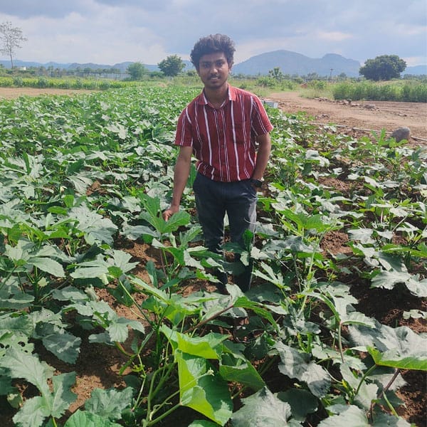 Myself ROSHAN S did my B.Sc. Hons in Horticulture. “I am from a farming family and have loved farming since childhood. I chose to study agriculture and completed my course at Adhiparasakthi Horticultural College. For the past year, I have been working as a farm supervisor, where we cultivate bhendi, bottle gourd, pumpkin, ash gourd, papaya, moringa, tomato, brinjal, curry leaf, turmeric, legumes, banana, agathi, and citrus on around 9 acres of land. We also grow fodder crops. I like to travel with Hooga seeds because I will also be a part of the native seed collection process which makes me proud and helps me learn something new about seed production.